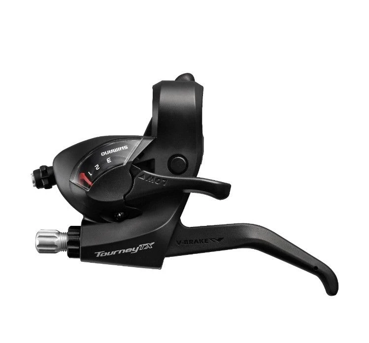 The SHIMANO TOURNEY TX EZ FIRE Plus Shift/Brake levers feature Reach Adjust, SIS Index Shifting, and an OPTICAL GEAR DISPLAY. They are available in black and silver.